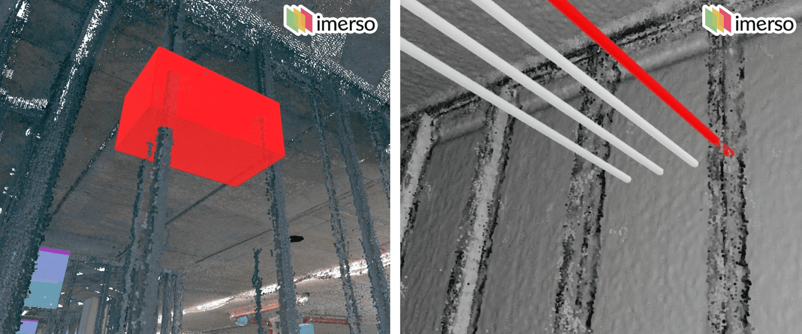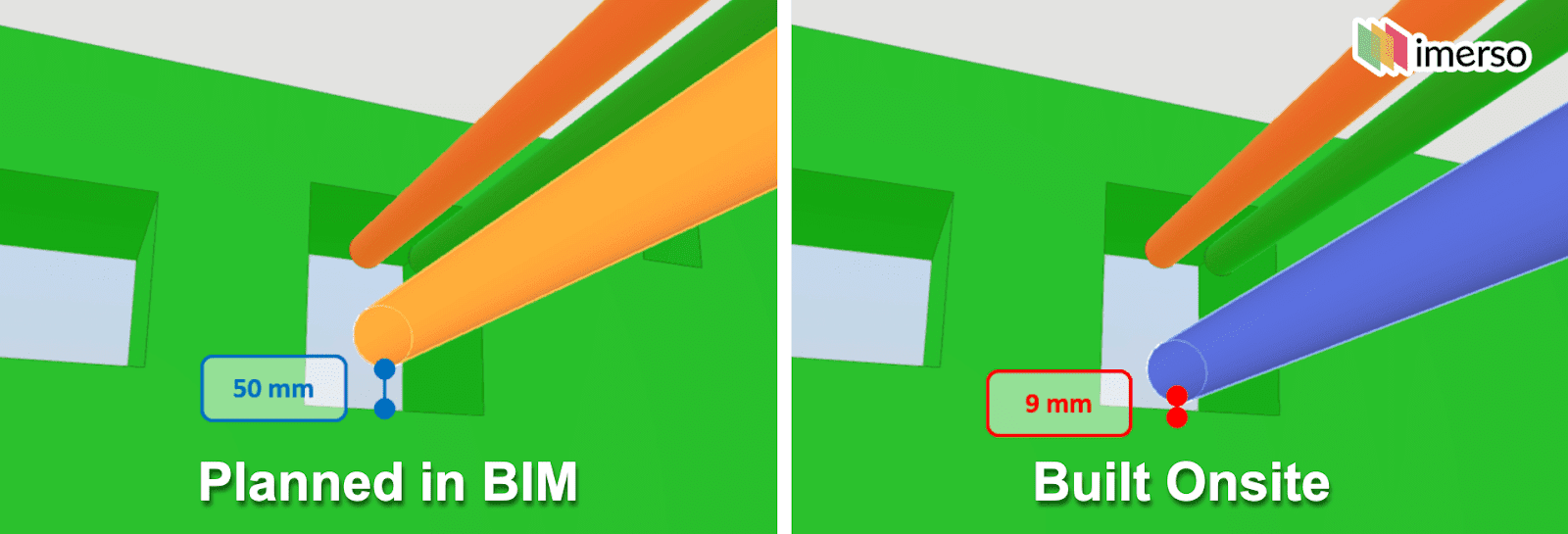 The Imerso platform continuously analyses the As-built environment onsite against the project’s BIM models automatically, immediately reporting on work status and any problematic deviations so these can be addressed early.