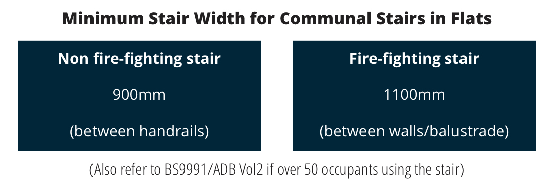 Guidance on stair width requirements for communal areas in flats