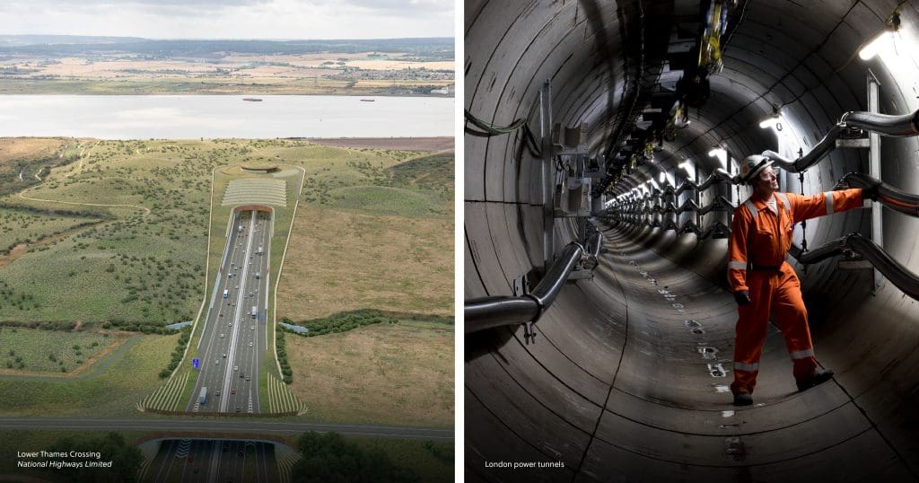 Also, there’s a closely related push towards material efficiency and circular reuse. Flagship schemes are already demonstrating the evolved state of UK infrastructure at scale – from diesel‑free plant and circular economy strategies at the Lower Thames Crossing, to cement‑free concrete on London Power Tunnels, to design changes and live opportunity registers at Simister Island.