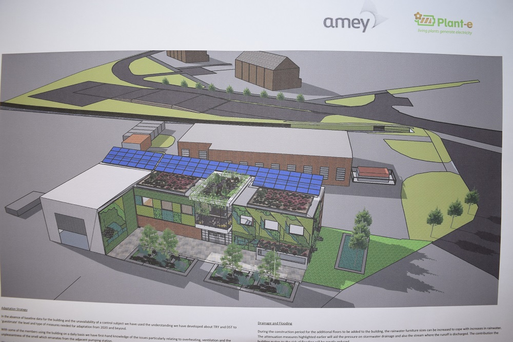 Handley said: “This design challenge was a felicitous opportunity for us to experiment with ideas for improving the existing offices, whilst considering how future development of the building and site could incorporate GI measures and new technology, such as the Plant-e products, as new or retrofitted elements.
