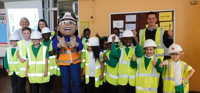 The construction firm visited St Patrick’s R.C Primary School in Cardiff to educate school children about construction site dangers