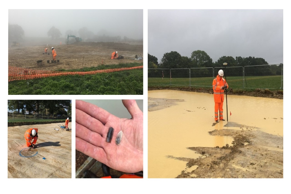 Archaeology South-East conducted site investigations in 2020 and 2021, starting with trenches dug along the line of one of the new roads, to investigate whether any archaeological remains that survived would be adversely affected by any construction work.