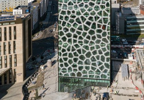 The Spine’s layout and design also uses biophilic design principles, with strong connections to nature established throughout the building. The distinctive façade takes inspiration from the human skin, with the striking Voronoi pattern including 23m individual polygons applied in a frit pattern to the glazing.