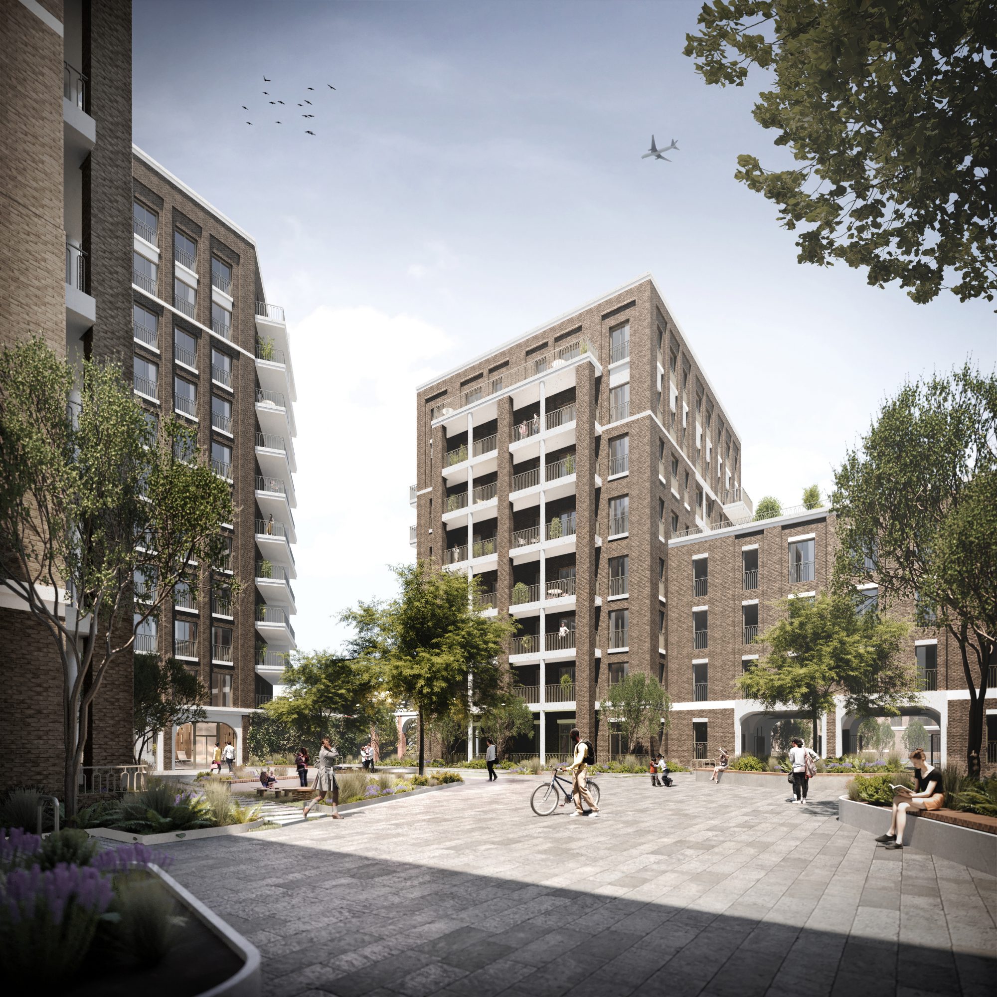 Existing buildings will be demolished and replaced with four buildings designed by Assael Architecture between four and 11-storeys tall. The buildings are designed around large piazzas and tree-lined boulevards and the development is complete with a linear pocket-park to the Western boundary of the scheme, car parking and cycle bays.